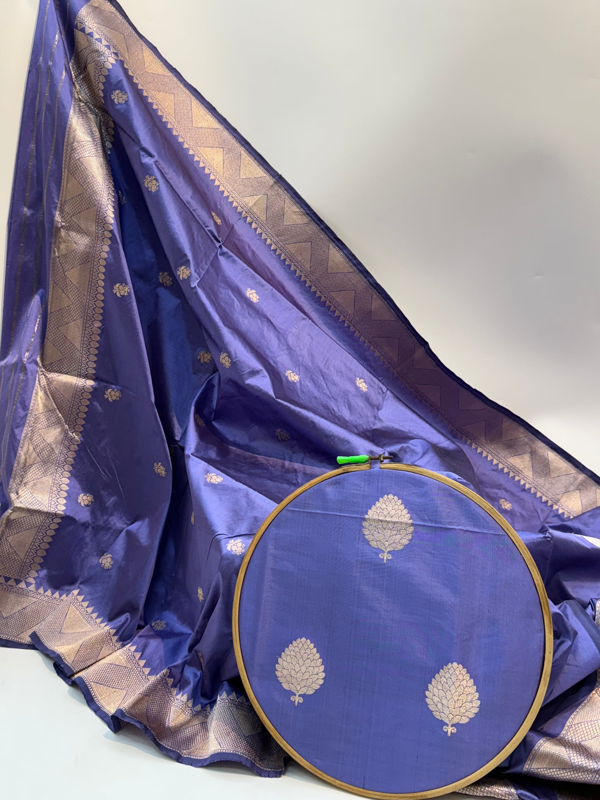 Handwoven in Banaras, this Grayish blue color Katan Suit piece is a canvas waiting for your imagination.