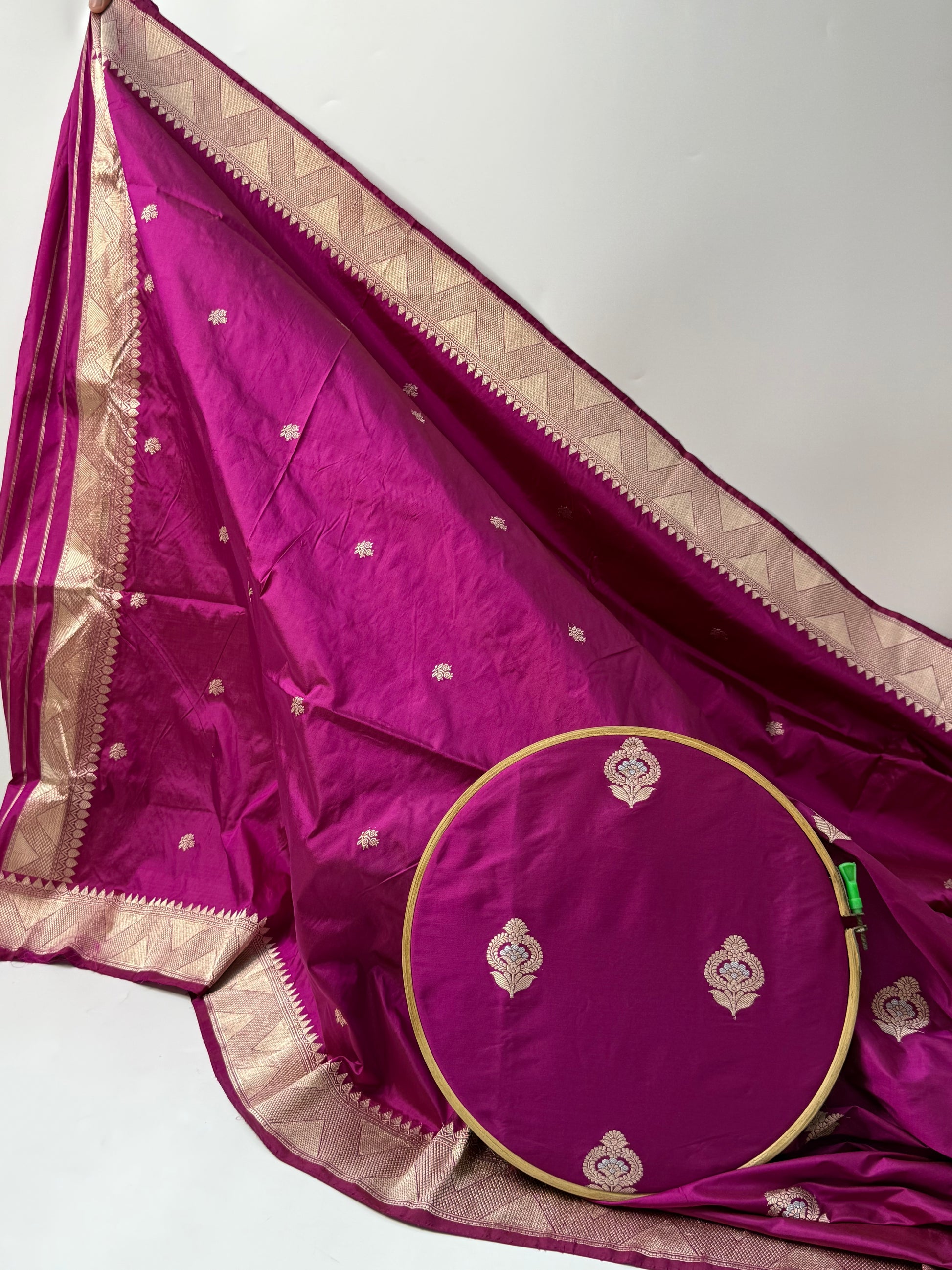 Handwoven in Banaras, this Burgendy Katan Suit piece is a canvas waiting for your imagination.