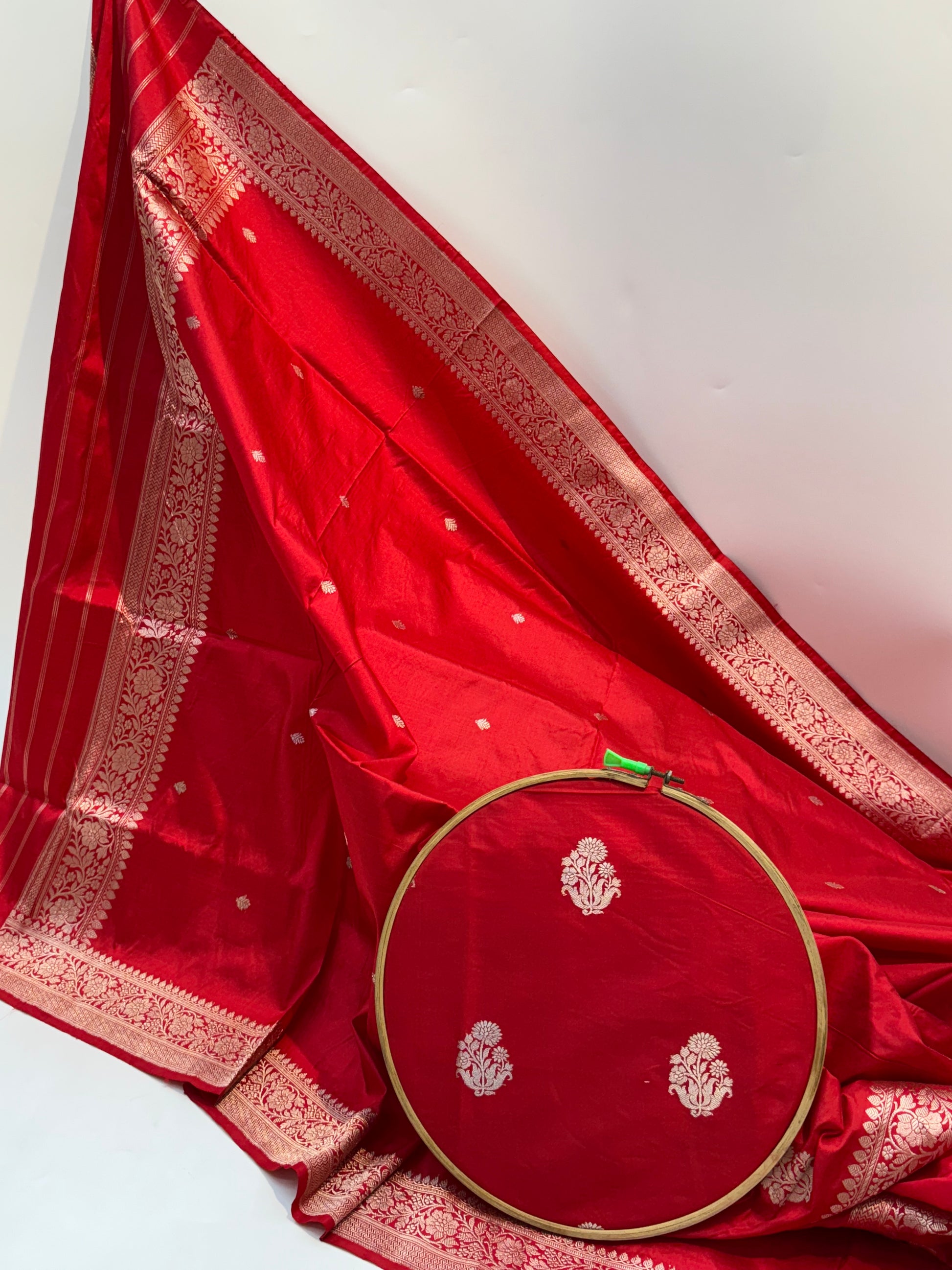 Handwoven in Banaras, this Red color Katan Suit piece is a canvas waiting for your imagination.