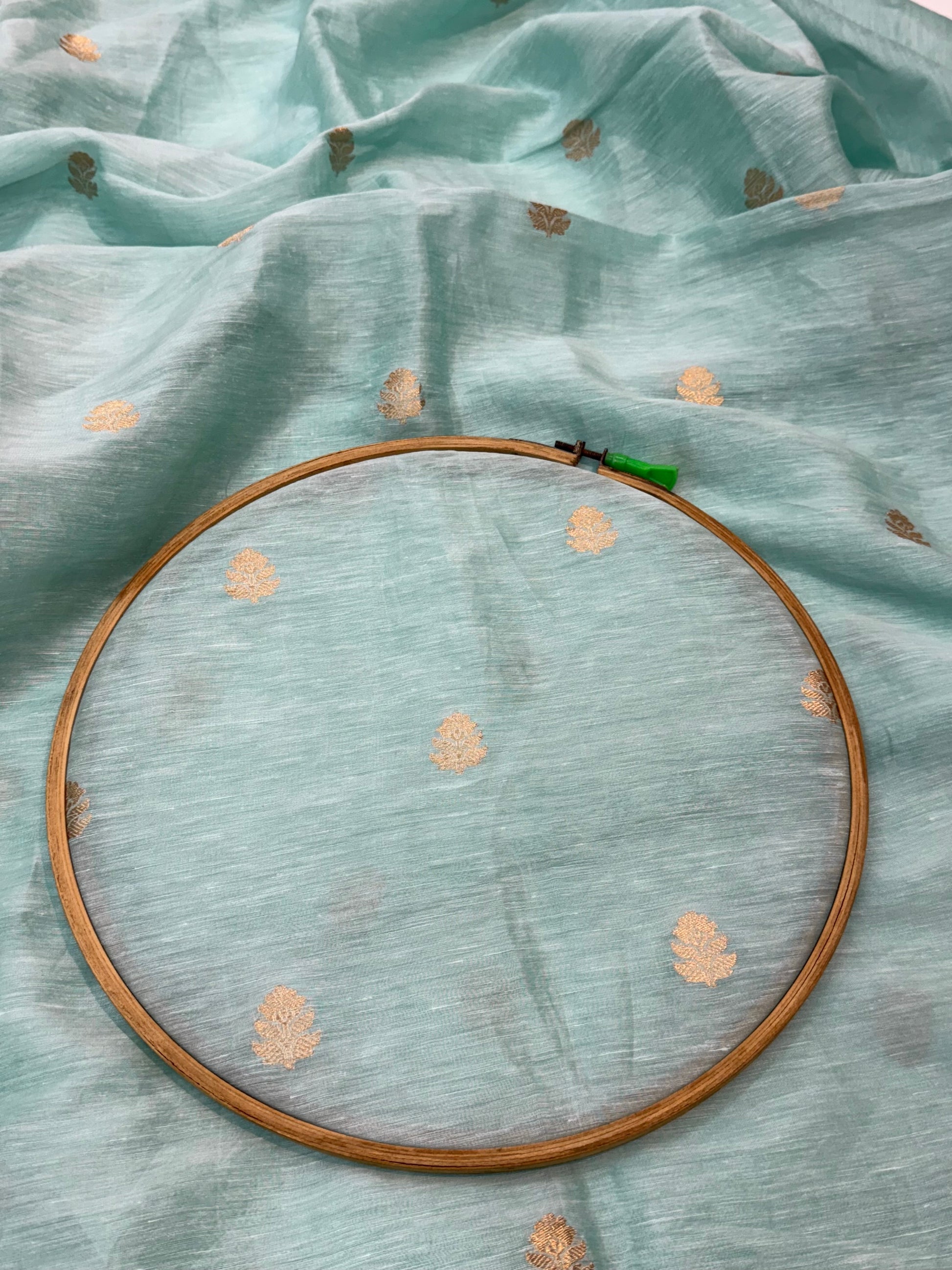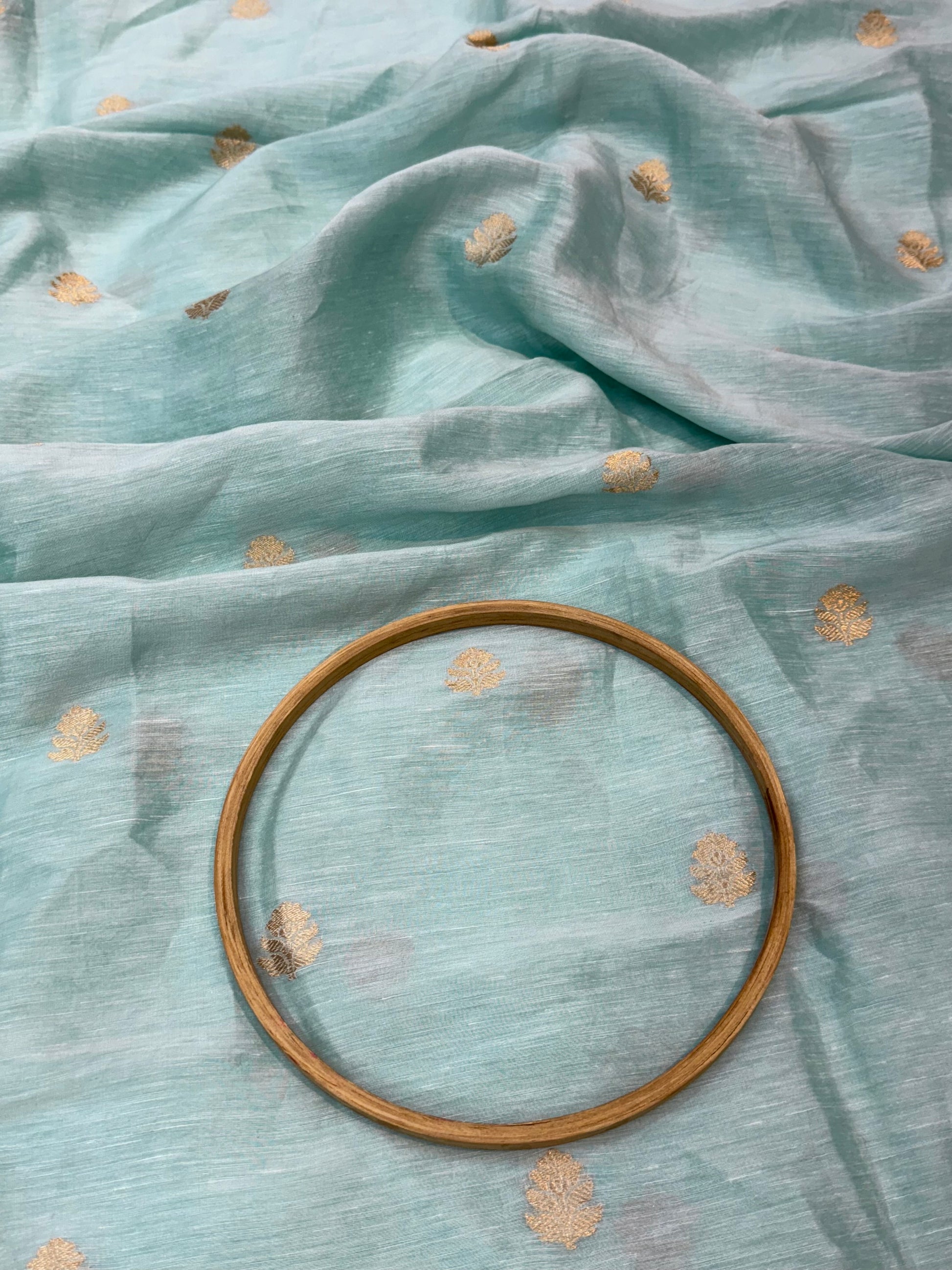 Handwoven in Banaras, this Sky Blue colour Linen silk Suit piece is a canvas waiting for your imagination.