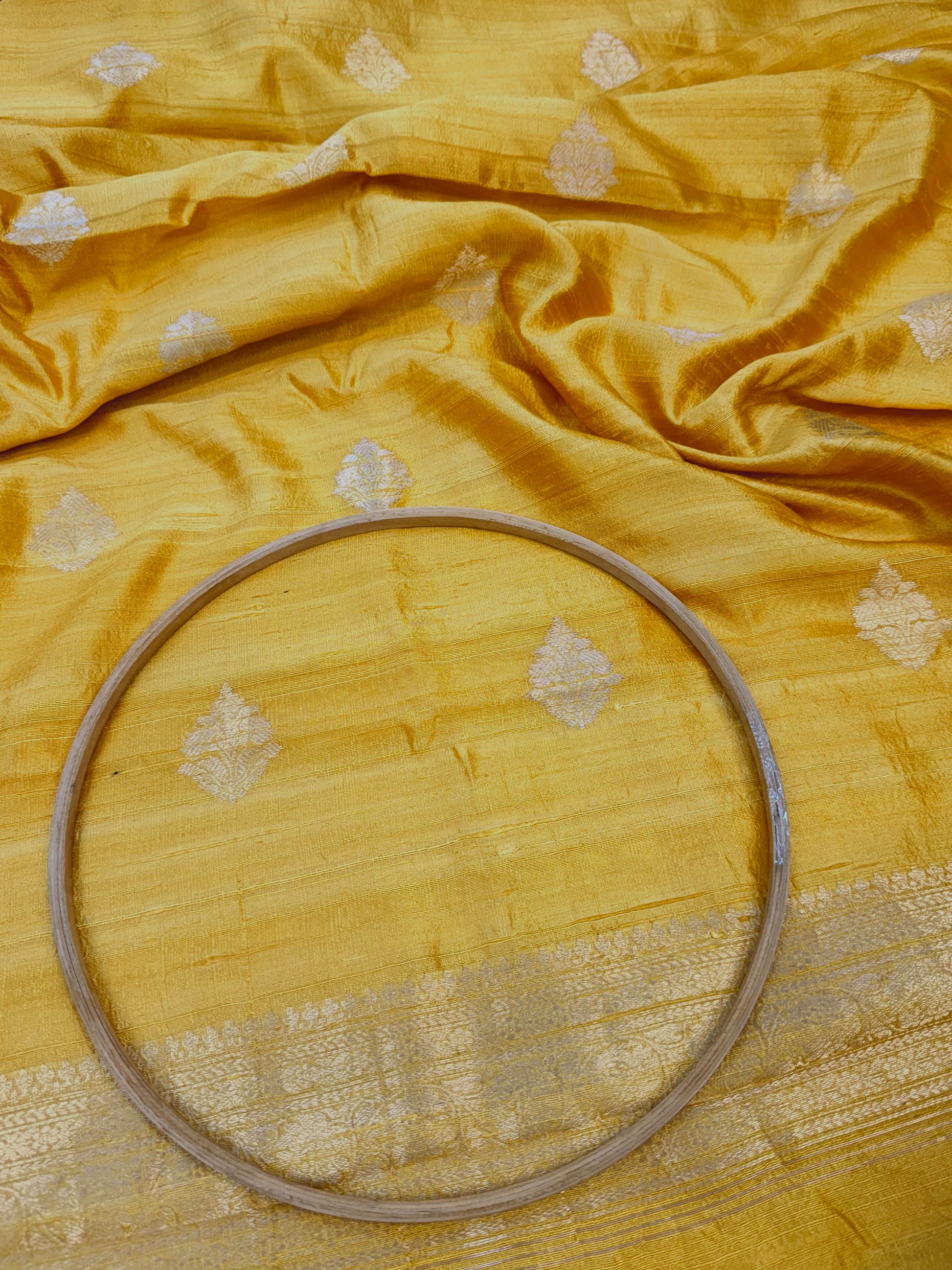 Handwoven in Banaras, this Yellow color Raw Silk Suit piece is a canvas waiting for your imagination.