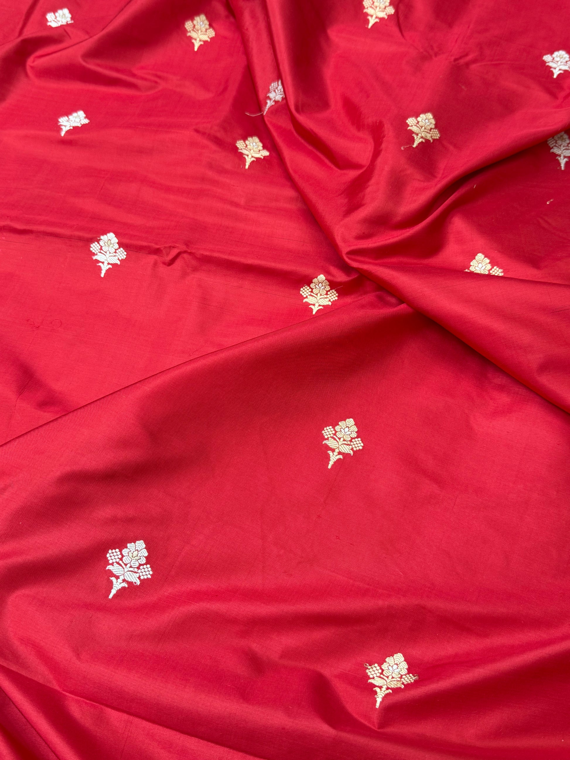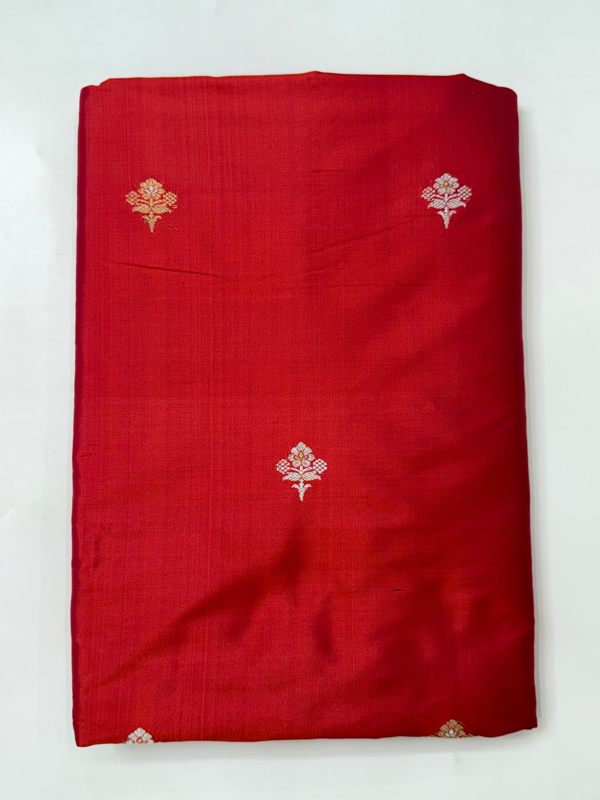 Handwoven Red color Katan Silk Fabrics