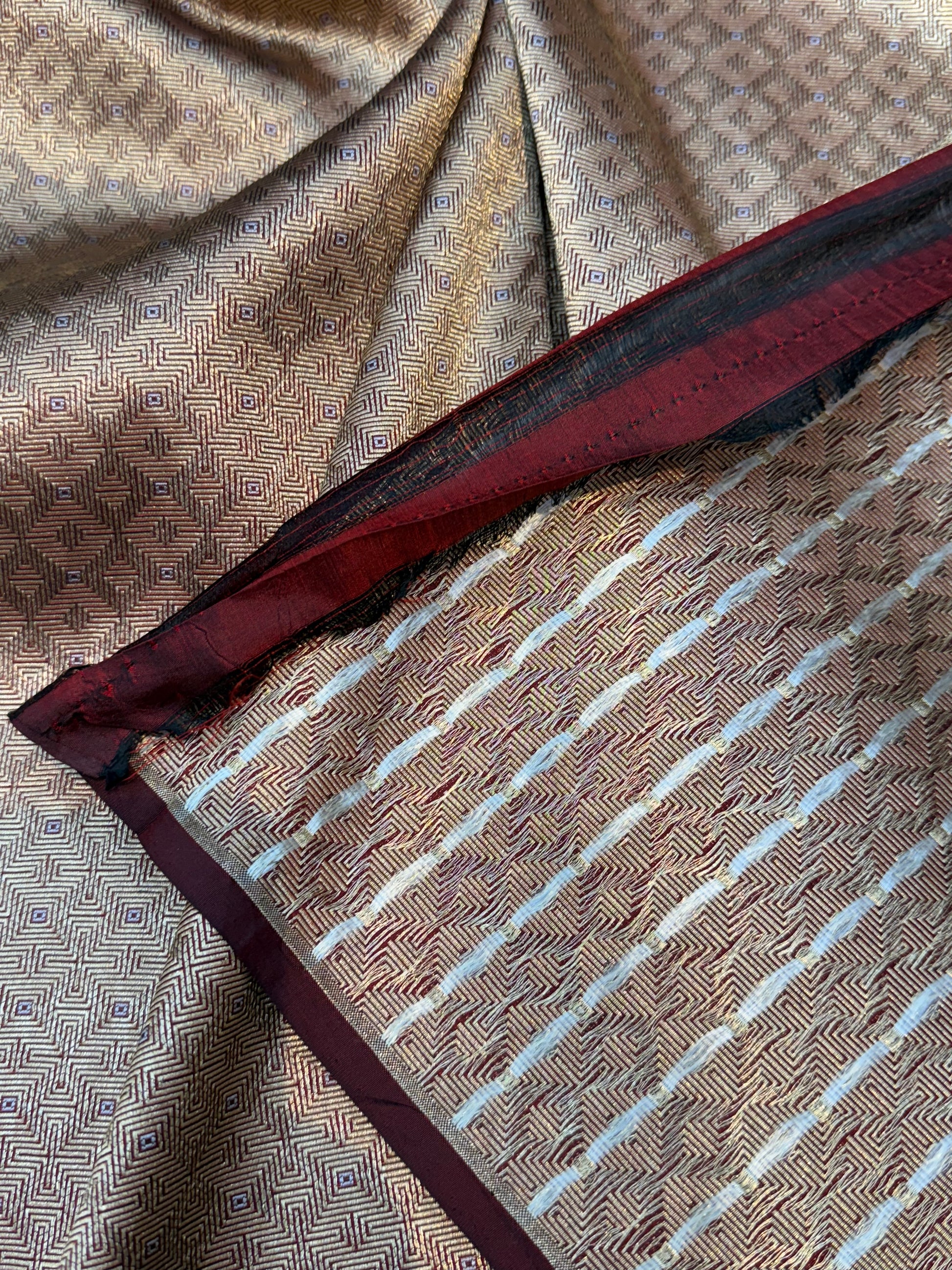 Please note that our textiles are handcrafted and handwoven leading to slight irregularities in design and fabric making each piece unique from others. Additionally, professional lighting may cause some colors to look slightly different on screen from what they would look like in real life. We sincerely hope you will appreciate and respect these unique traits of handloom products. For more clarity on your purchase, kindly contact us for a video call.