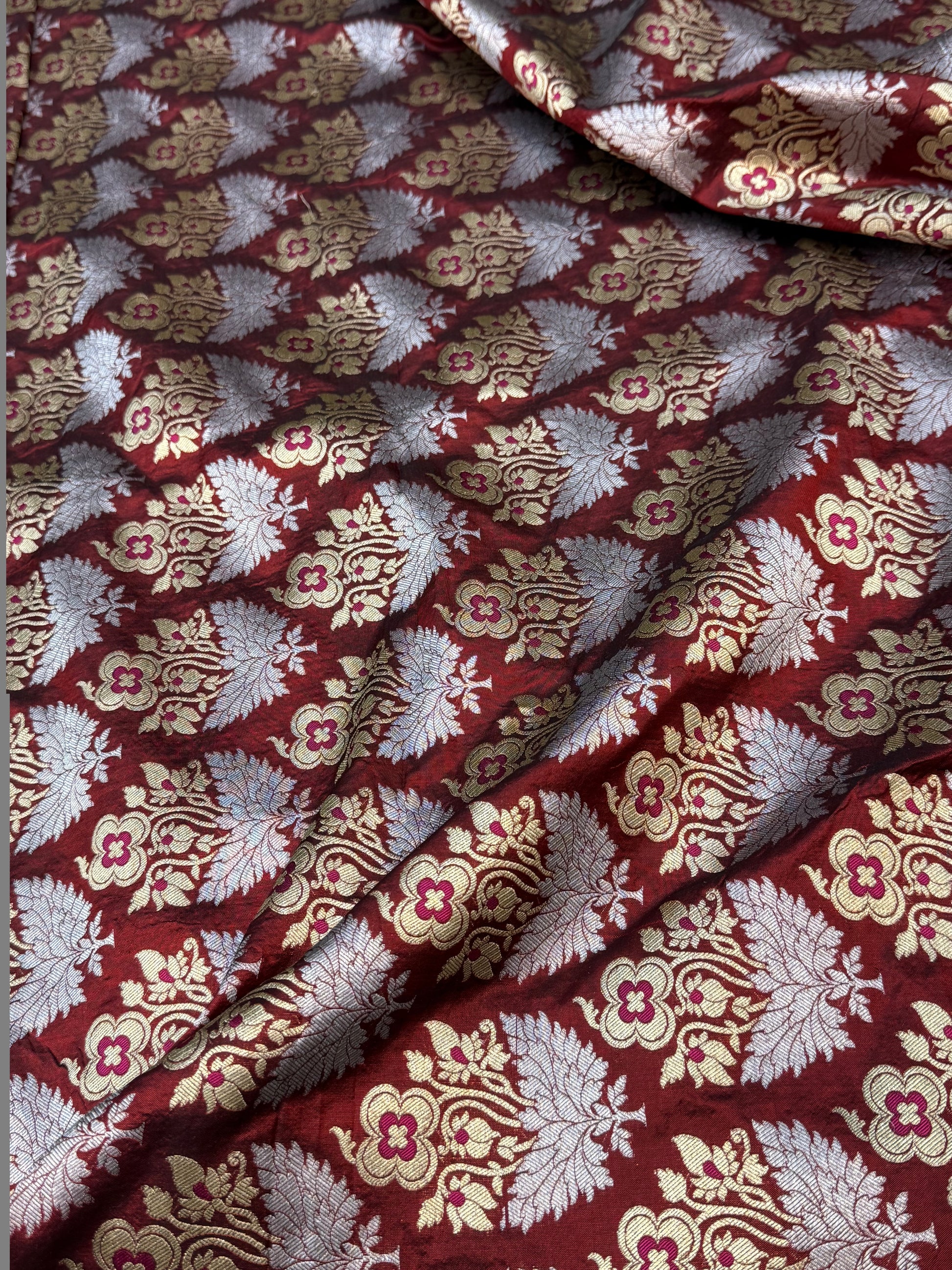 Pure Banarasi Brocade Mahroon Color Fabrics