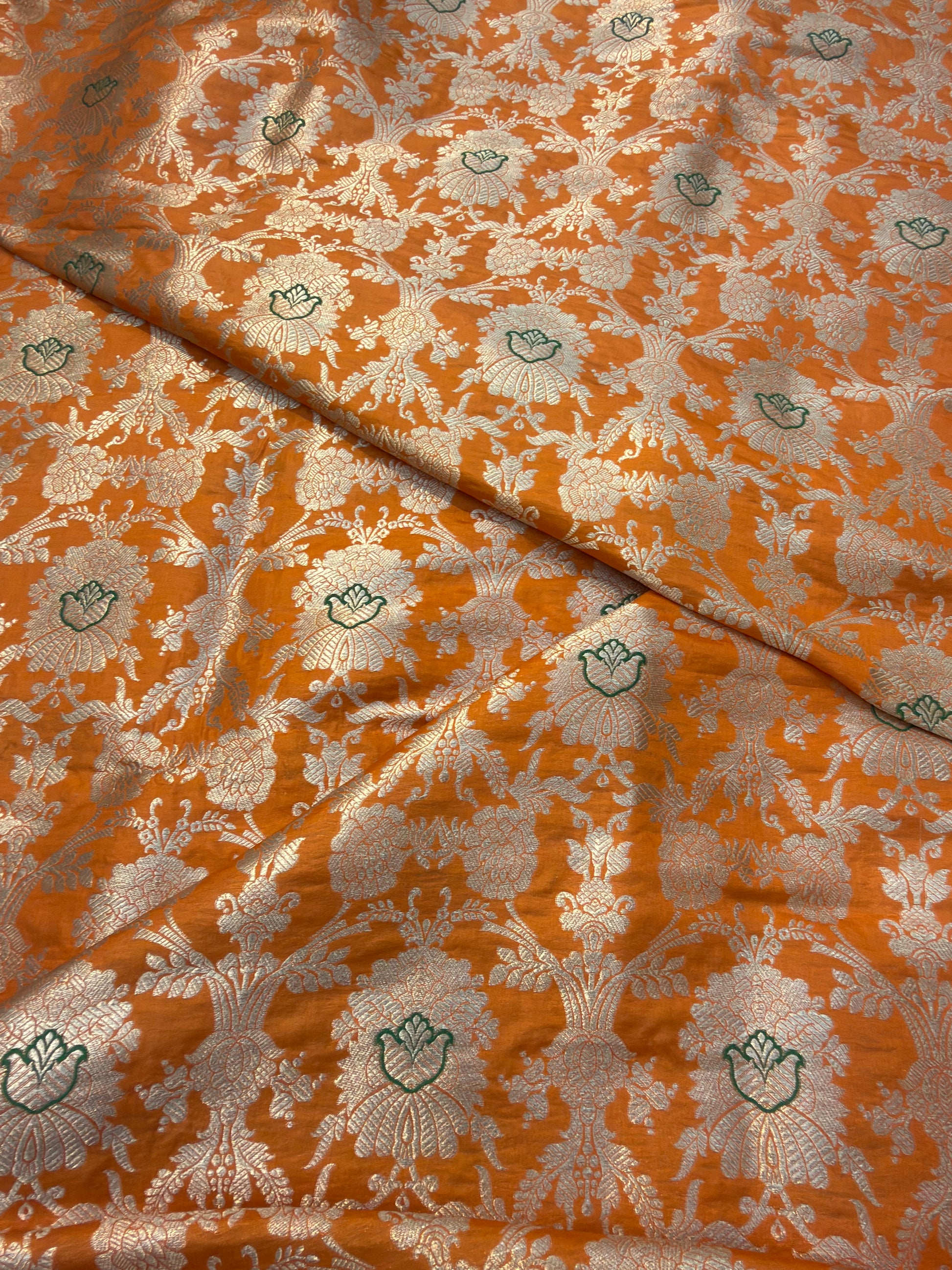 Pure Banarasi Brocade Orange Colour Fabrics