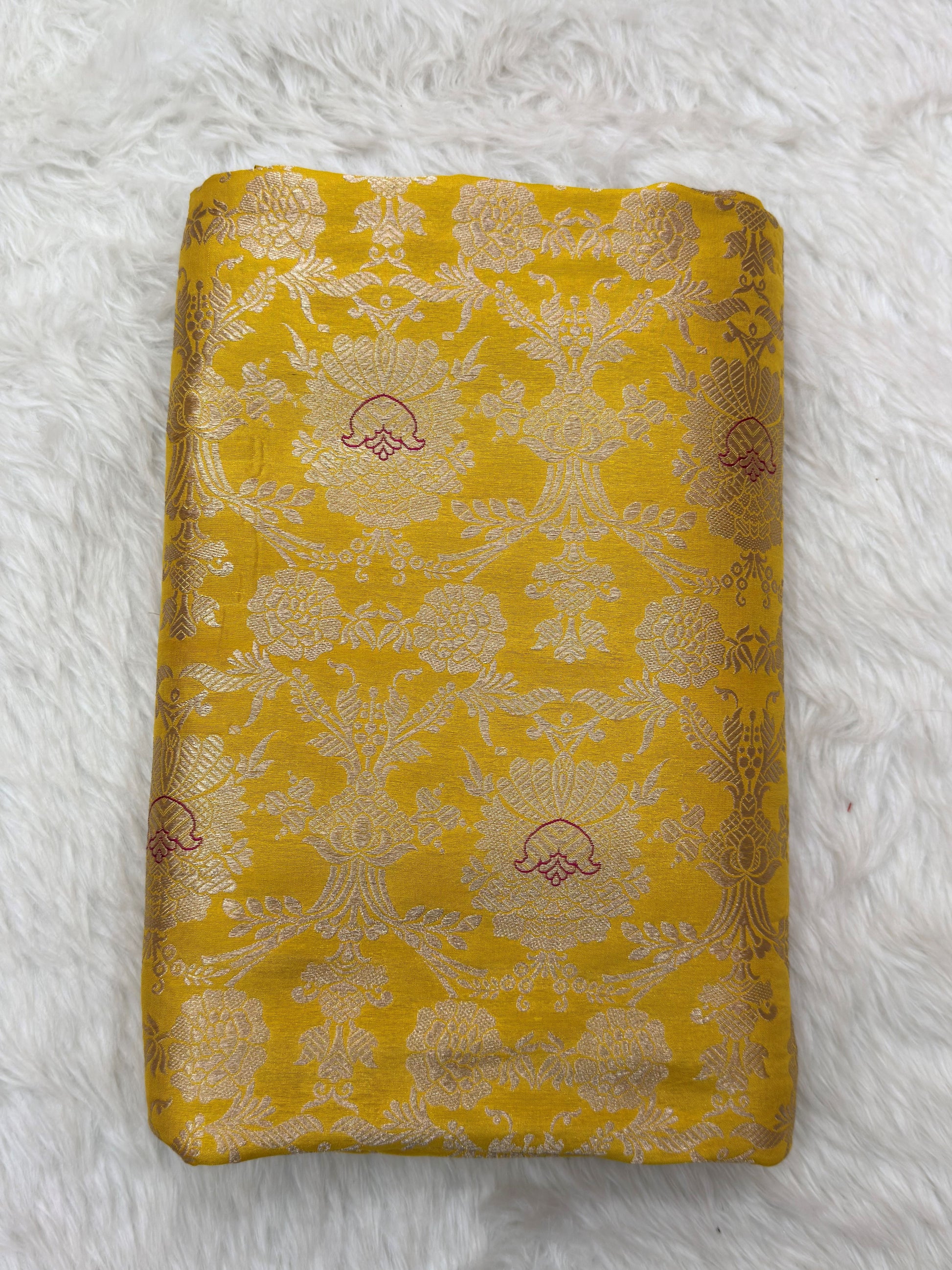 Pure Banarasi Brocade Yellow Colour Fabrics