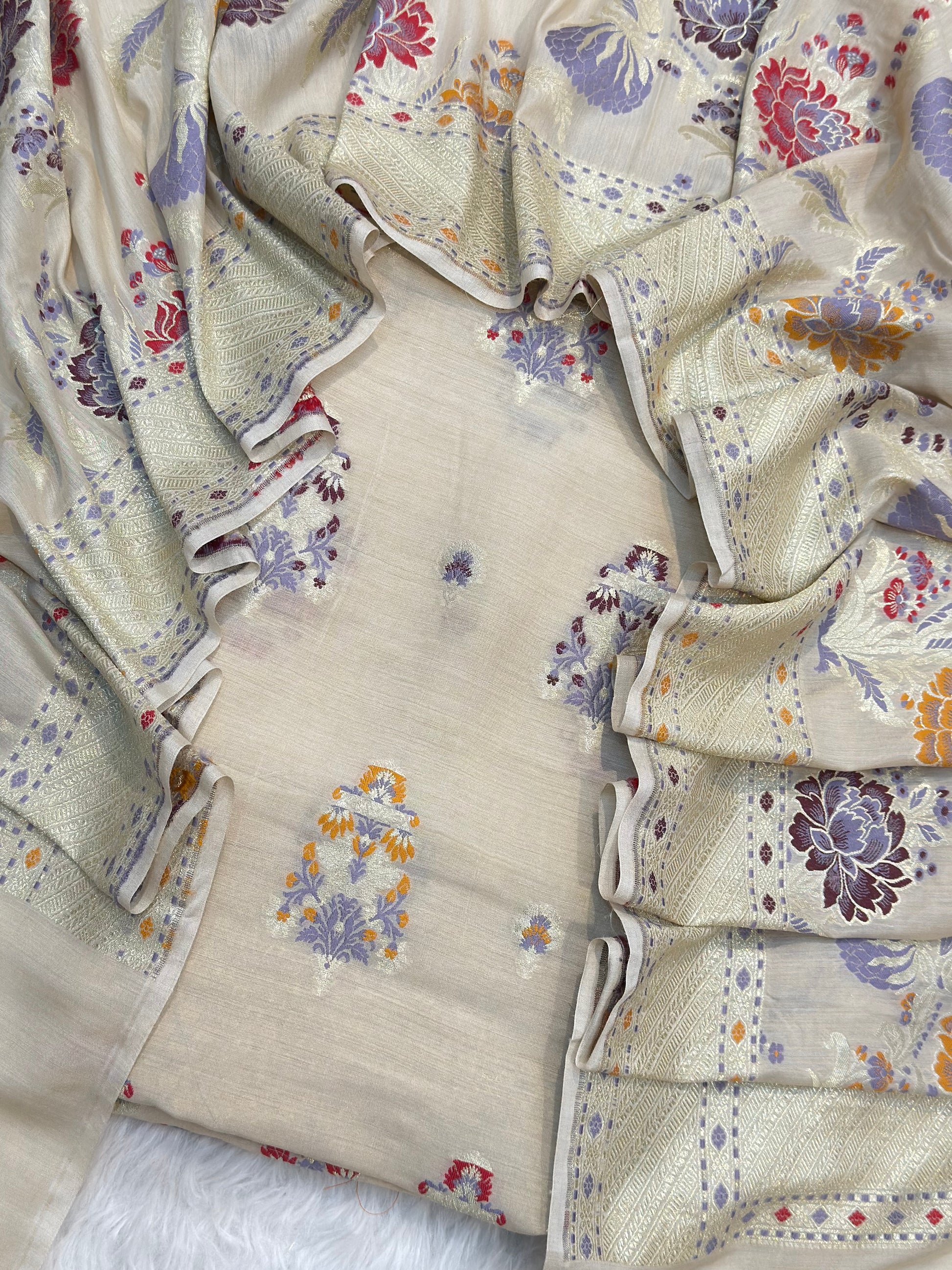 Handwoven in Banaras, this Navy Blue Colour Munga silk Suit piece is a canvas waiting for your imagination.